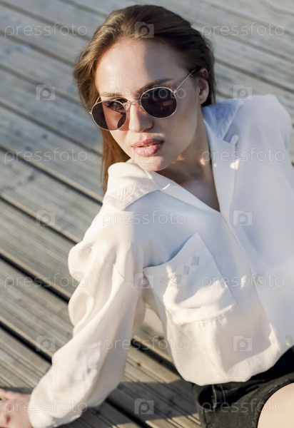 Стильная женщина на пирсе у моря