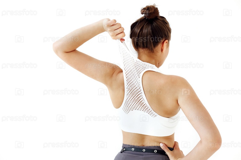 Неузнаваемая женщина, натягивающая укороченный топ