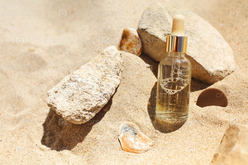 Эфирное масло на камнях на пляже