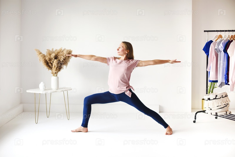 Гибкая женщина занимается йогой дома