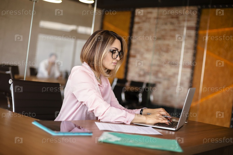 Молодая женщина с ноутбуком в офисе