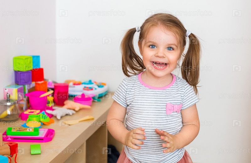 Восхищенный ребенок смеется дома