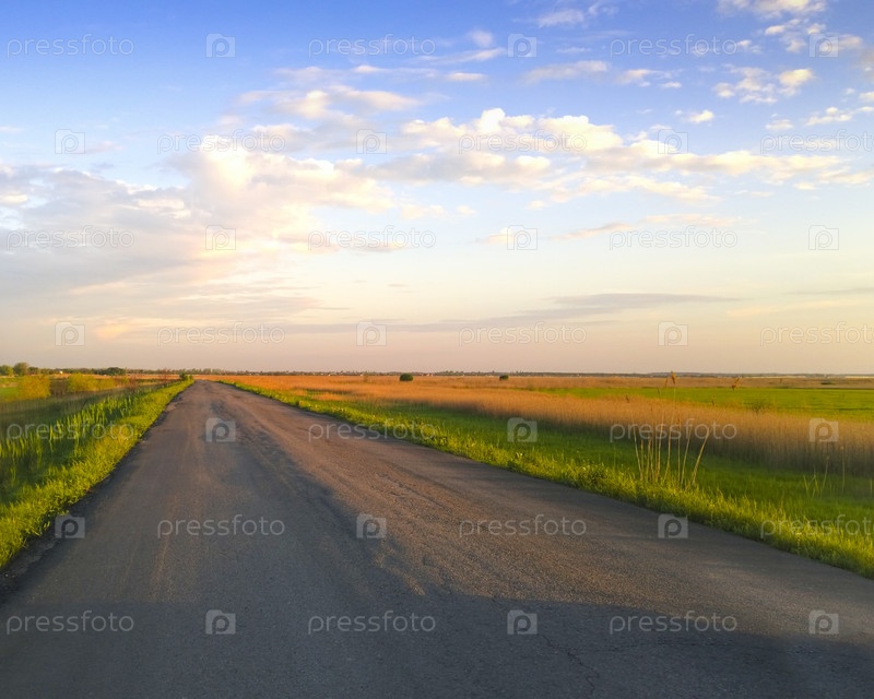 Сельская дорога в пасмурный вечер
