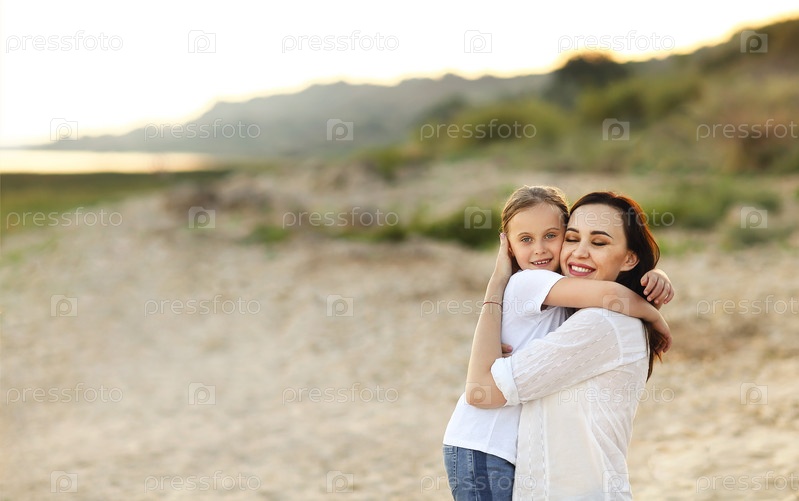 Мать и дочь на песчаном пляже
