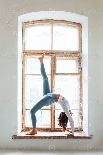 Гибкая женщина занимается йогой дома