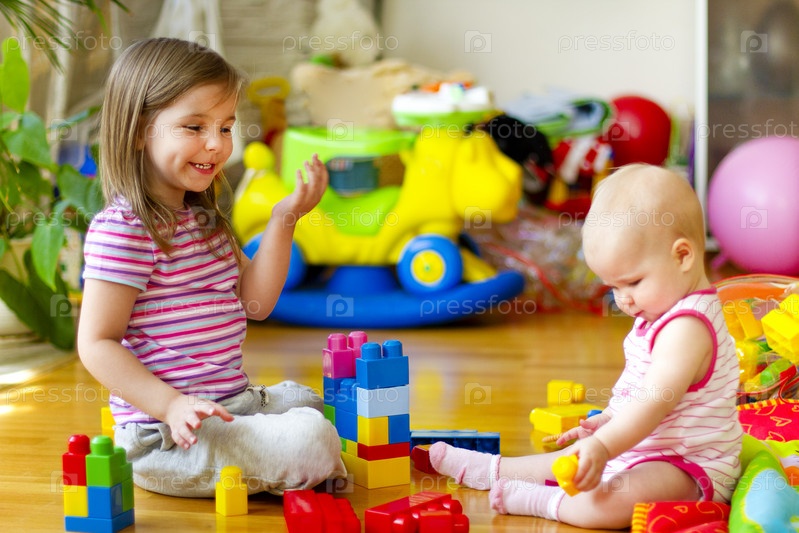 Сестры играют с игрушками дома