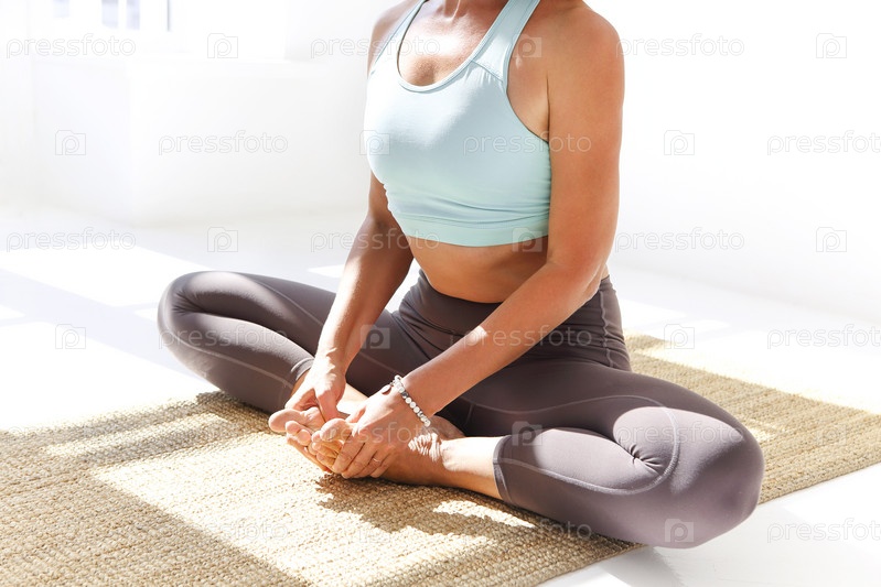 Стройная женщина медитирует в позе лотоса