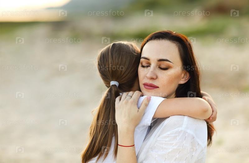 Мать и дочь на песчаном пляже