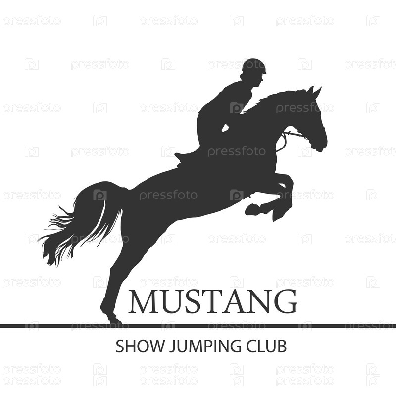 Прыгающая лошадь. Силуэт векторных изображений всадника на скачущей лошади