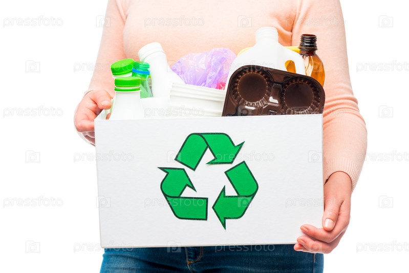 Женская рука держит пустую пластиковую бутылку в мусорном баке