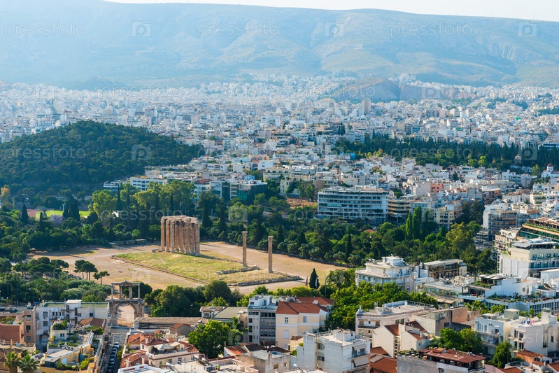 Греческий олимпийский храм Зевса, пейзаж с древними руинами в Афинах, Греция