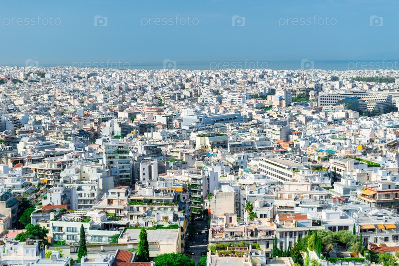 Панорама города Афины увиденная от Акрополя в Греции