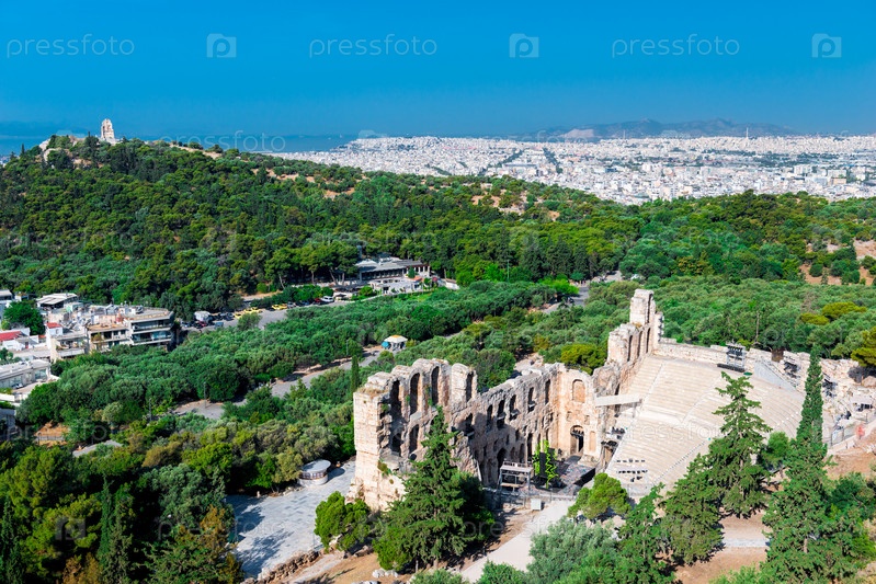 Древний Одеон Герода Аттика в Афинах, Греция на холме Акрополя