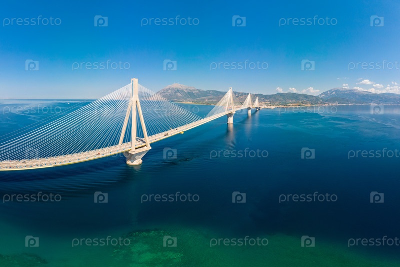 Панорамный вид с воздуха Мост Рион-Антирион. Мост, соединяющий города Патры и Антирио, Греция