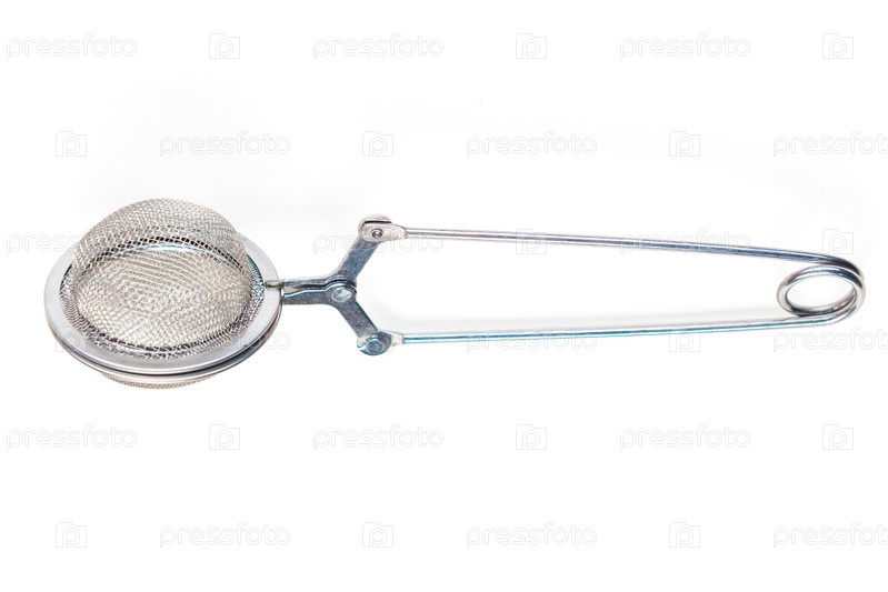Круглое металлическое ситечко для чая, изолированное на белом, концепция без отходов