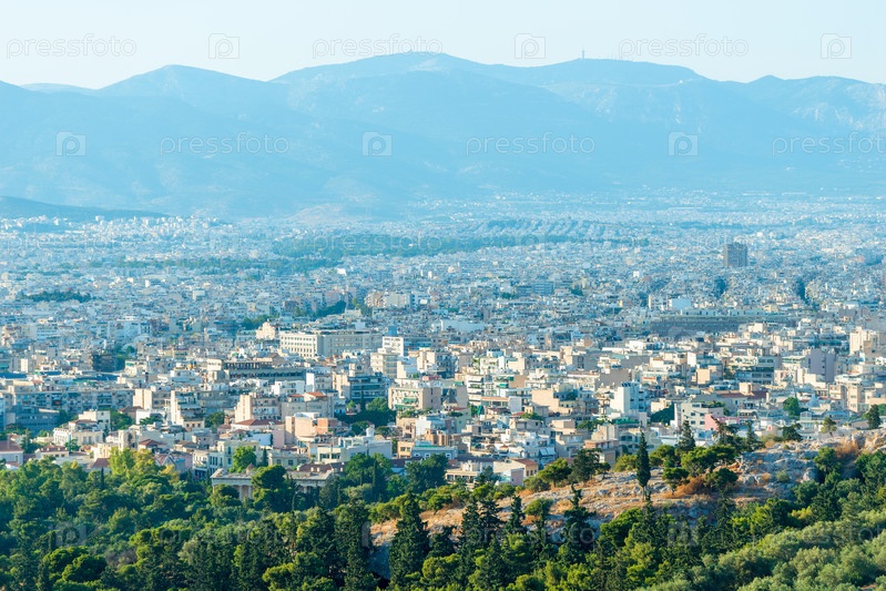 Панорама города Афины увиденная от Акрополя в Греции