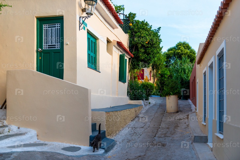 Старая узкая улица в Анафиотике, район Плака, Афины, Греция