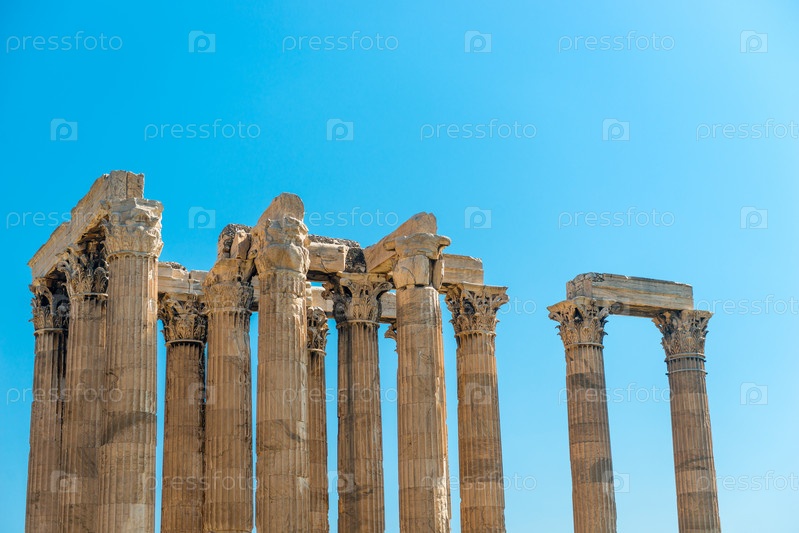 Греческий олимпийский храм Зевса, пейзаж с древними руинами в Афинах, Греция