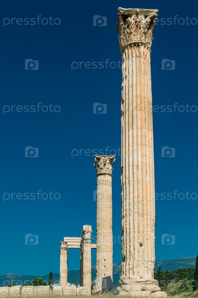 Греческий олимпийский храм Зевса, пейзаж с древними руинами в Афинах, Греция