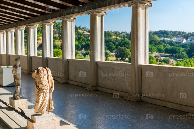 Перспектива колонн Стоа Атталоса в древней Агоре в Афинах, Греция