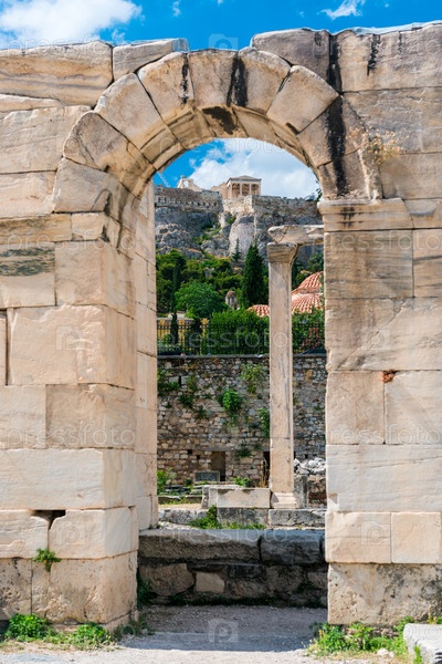 Древние греческие руины, столбцы, здание. Афины, Греция