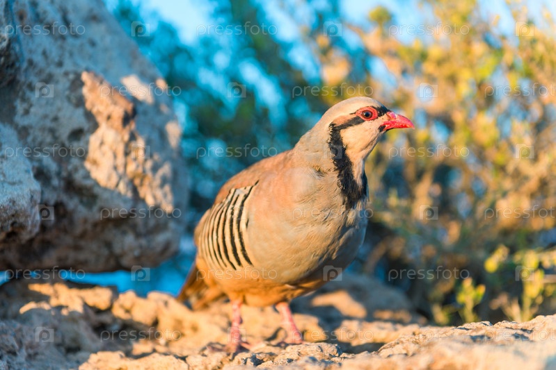 Дикая красноногая куропатка (Alectoris rufa) в естественной среде обитания