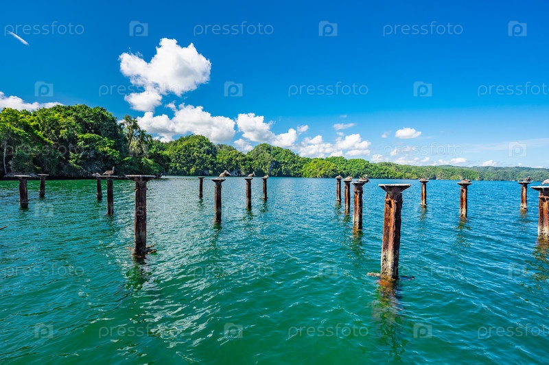 Деревянный мост врезается в море Доминиканская Республика