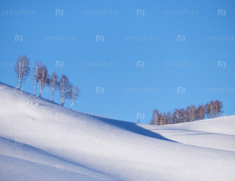 Пояс берез под инеем на снежных пятках под голубым небом в зимний сезон