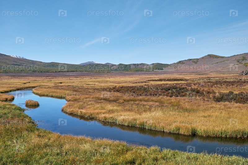 Алтайская река Куркурек на плато Эштыкель. Алтай, Сибирь, Россия