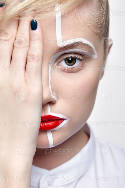 Портрет моды красоты молодой женщины. Женщина с необычным творческим макияжем на лице
