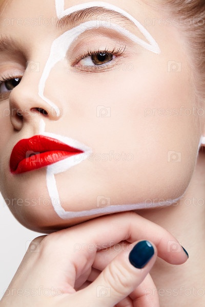 Портрет моды красоты молодой женщины. Женщина с необычным творческим макияжем на лице