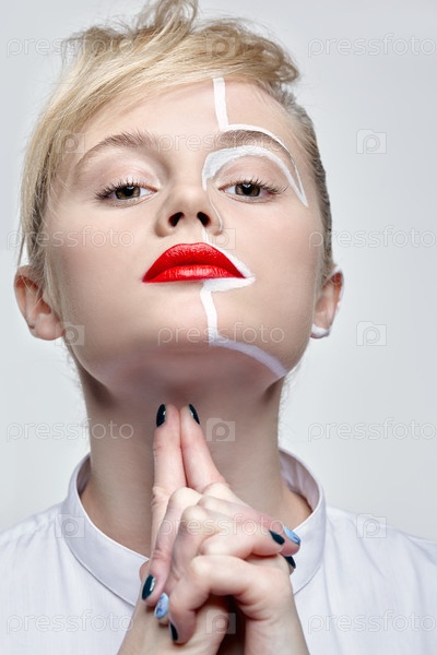 Портрет моды красоты молодой женщины. Женщина с необычным творческим макияжем на лице