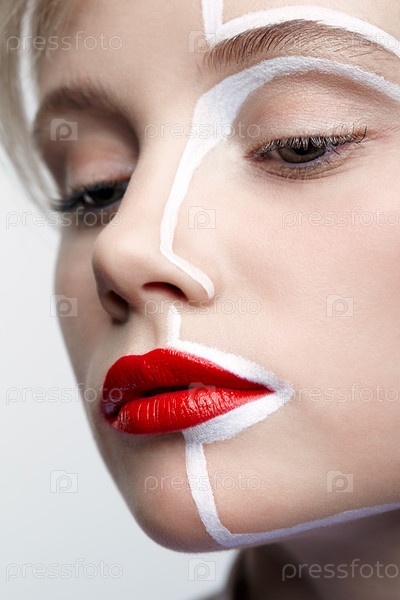 Крупным планом красота моды выстрел женского лица. Женщина с необычным креативным макияжем