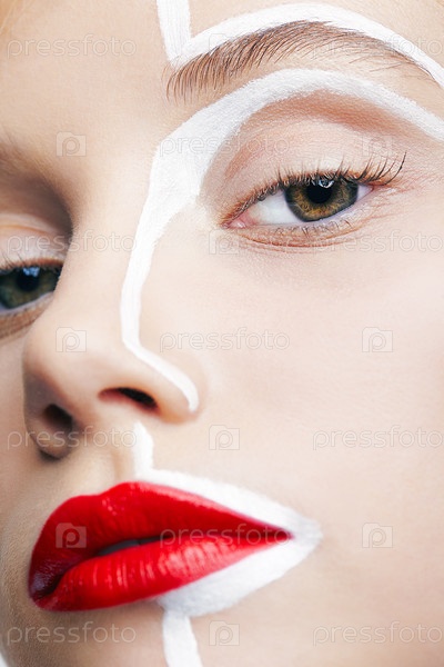 Крупным планом красота моды выстрел женского лица. Женщина с необычным креативным макияжем