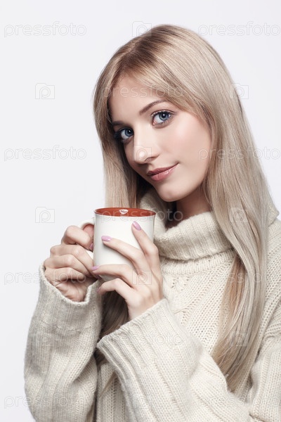 Блондинка пьет чашку чая