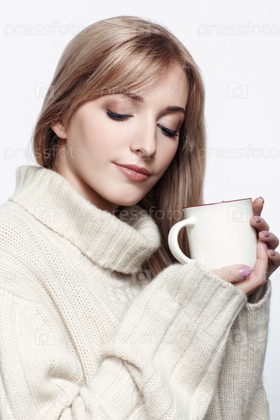 Блондинка пьет чашку чая