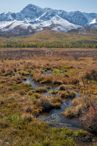 Вид на Алтайское озеро Джангыскол и горное плато Эштыкель. Северо-Чуйский хребет. Россия