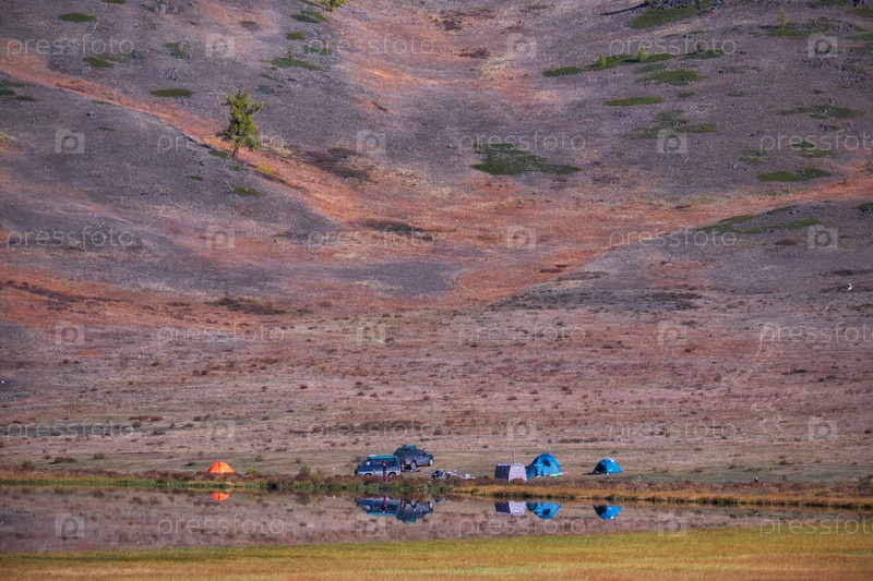 Туристическая база на берегу алтайского озера Джангыскол на плато Эштыкель