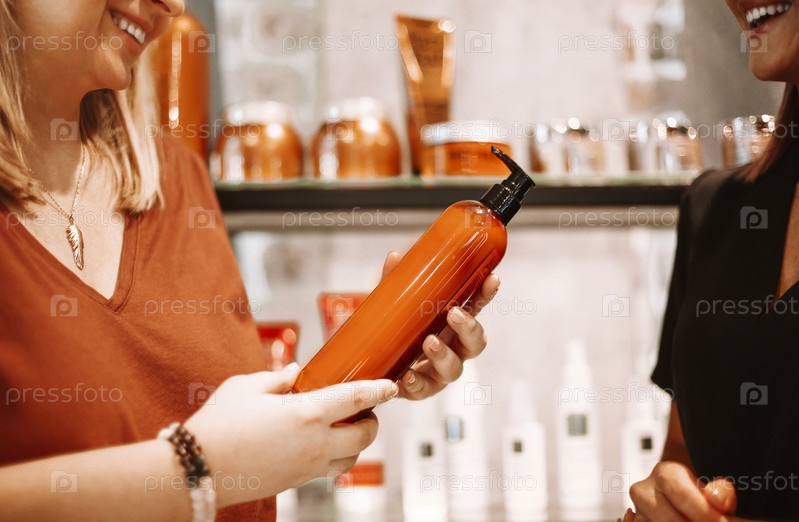 Женщины обсуждают косметические товары в салоне