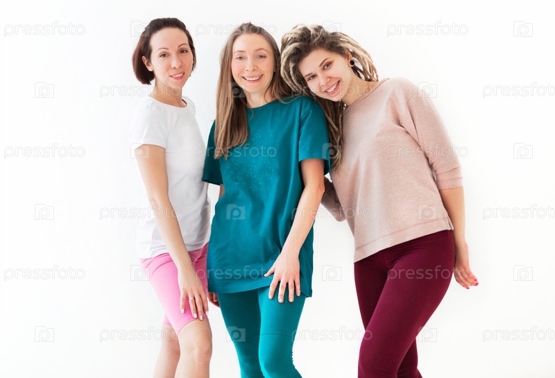 Веселые молодые подруги медитируют вместе