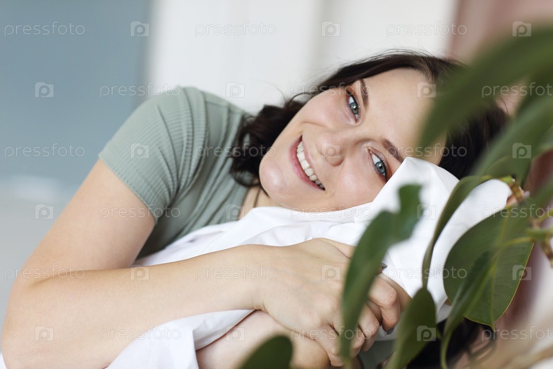 Портрет привлекательной жизнерадостной молодой женщины с гламурным макияжем