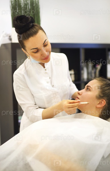 Женский косметолог, работающий с клиентом