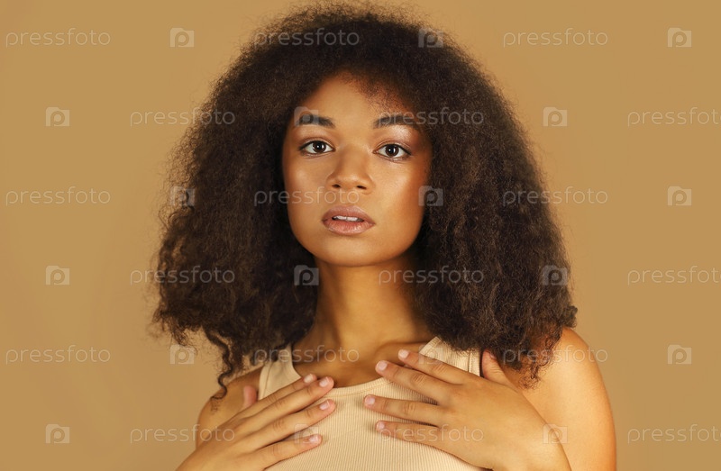 Крупный план портрета молодой девушки смешанной расы, смотрящей в камеру со спокойным вопрошающим выражением лица