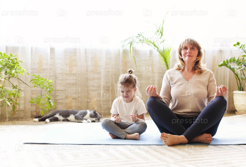 Бабушка и внучка медитируют вместе