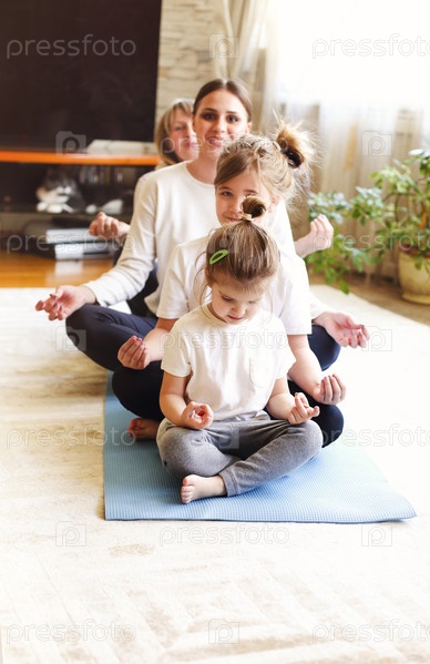 Семья из нескольких поколений вместе занимается йогой