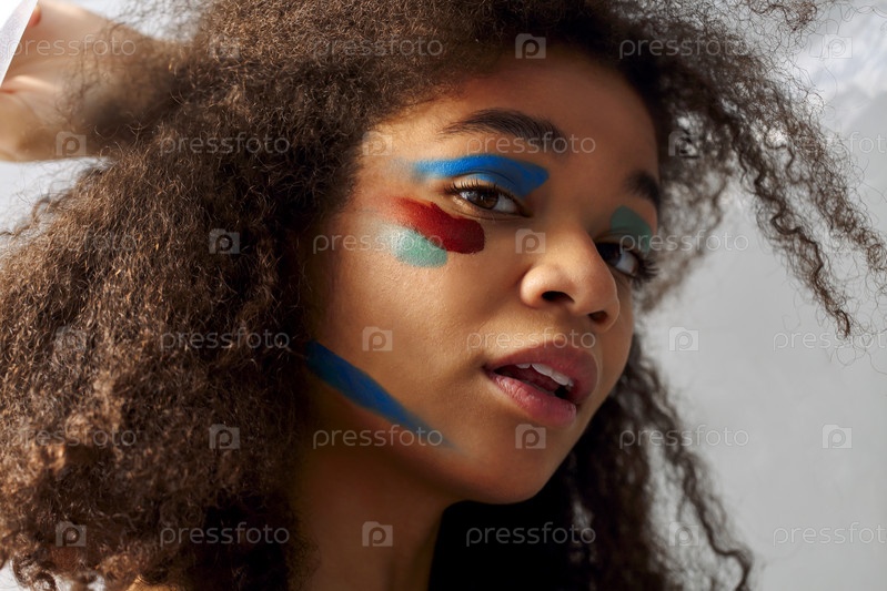 Красивая счастливая афроамериканка с творческим макияжем