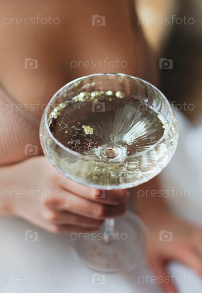 Урожай самки с бокалом шампанского