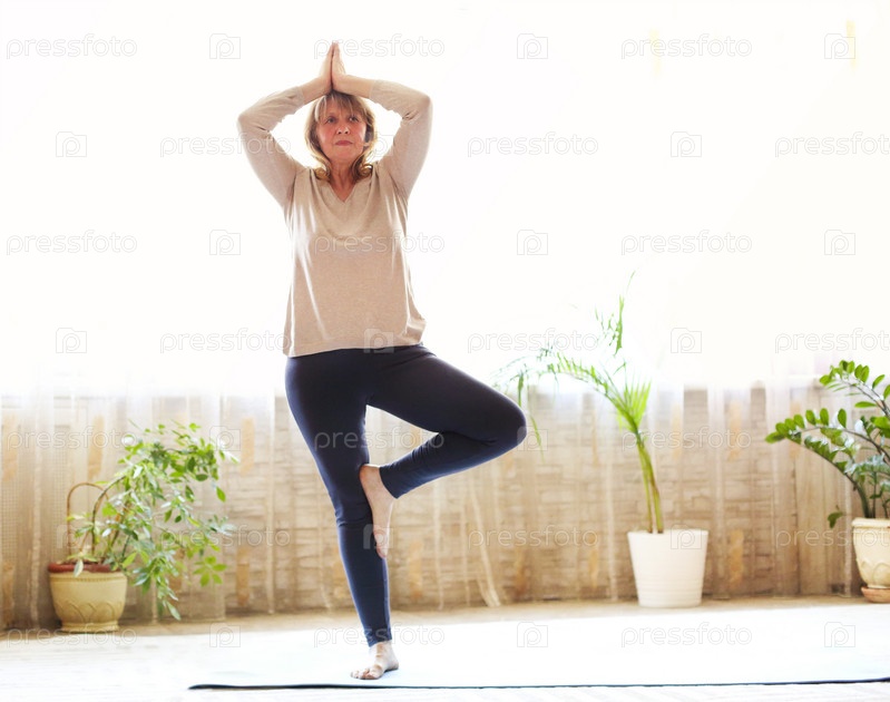 Зрелая женщина растягивает тело на полу