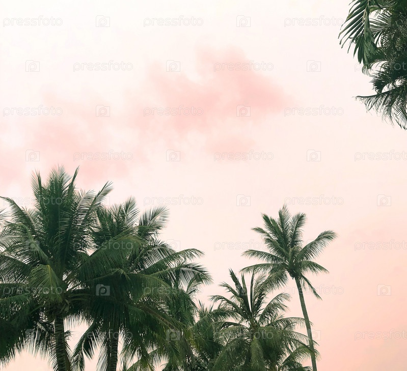 Пальмы против удивительного розового неба сладкой ваты на закате