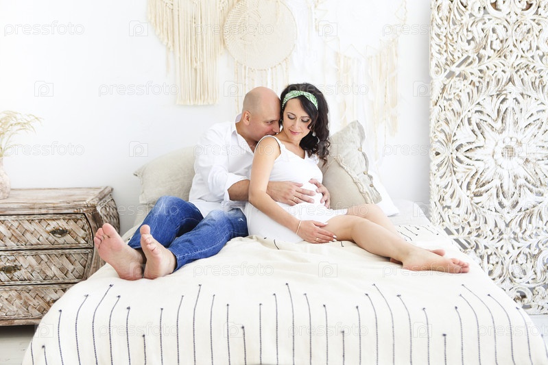 Мужчина и беременная женщина на кровати